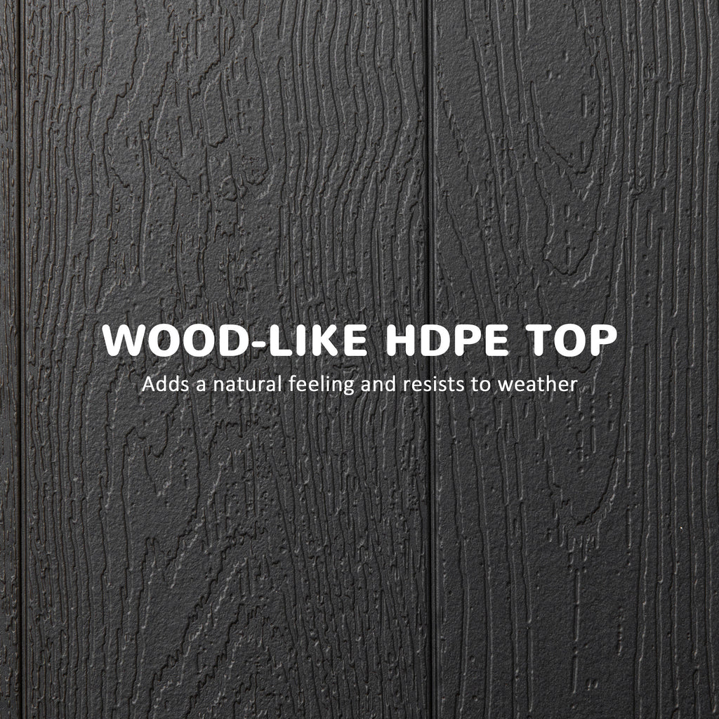 - PIANO EFFETTO LEGNO: Il tavolo da giardino ha un piano di 4 cm in HDPE con effetto legno dall'aspetto naturale, facile da pulire e resistente alle intemperie