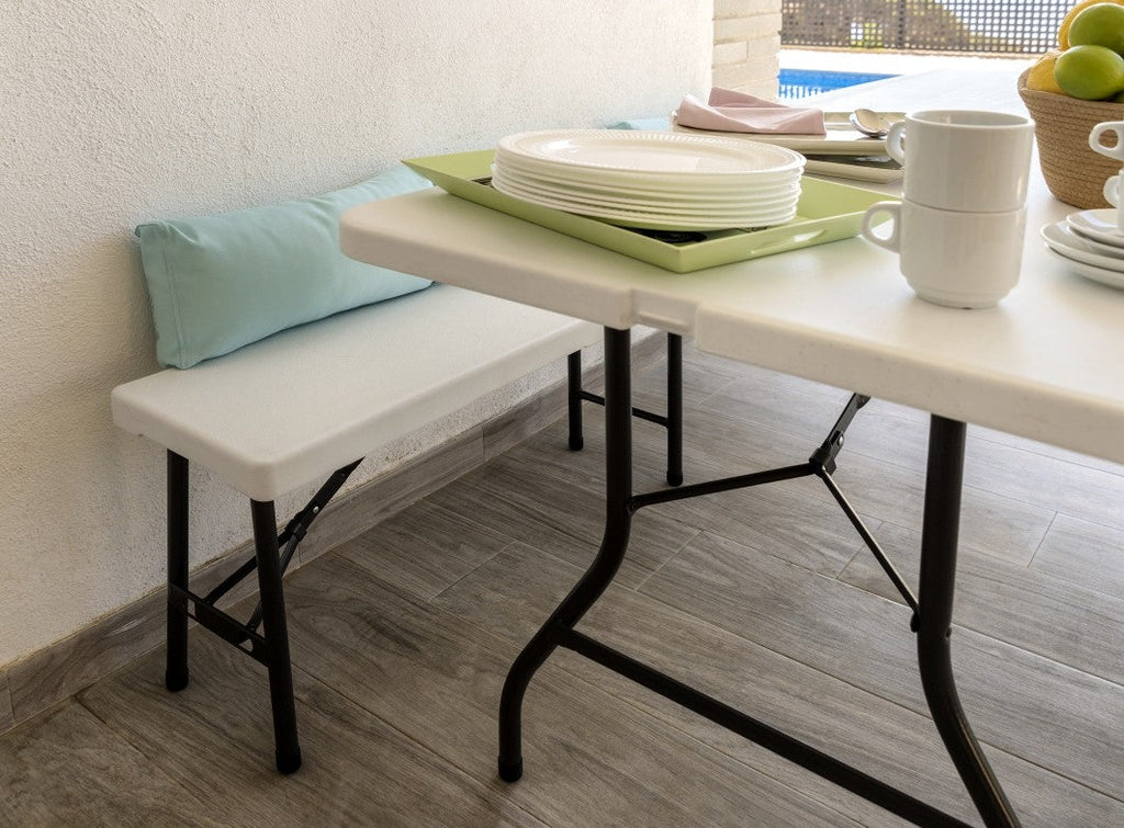 Table traiteur pliante rectangulaire 182x76x74 cm en résine blanche