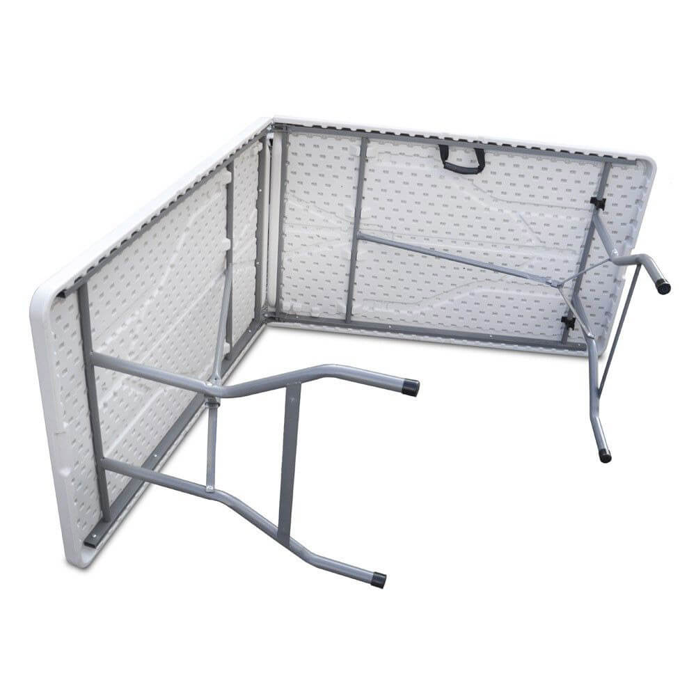 Table traiteur pliante rectangulaire 240x70x74 cm en résine blanche
