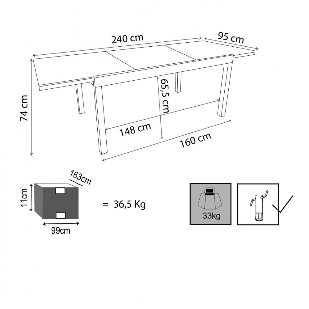 Table Extensible Cayman 160/240x95x75 h cm en Aluminium Blanc