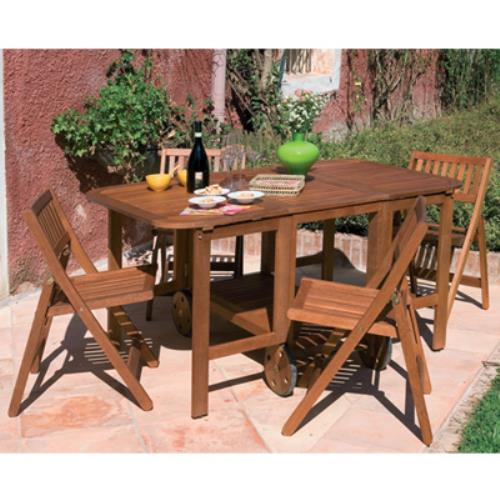 Table avec 4 chaises pliantes en bois peu encombrantes pour mobilier de jardin extérieur
