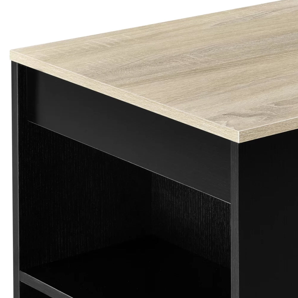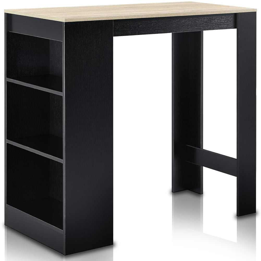 1 x Consolle Tavolo Alto da Bar 3 Ripiani Tavolino Nero e Quercia Penisola Cucina