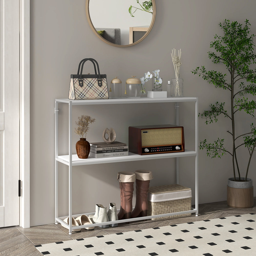 Tavolo Consolle da Ingresso con Ripiano Aperto 100x30x87 cm in Acciaio e Truciolato Bianco