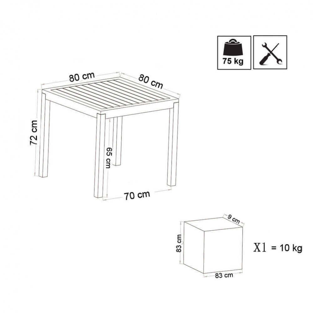 Table Cuba 80x80x74 h cm en Aluminium Blanc