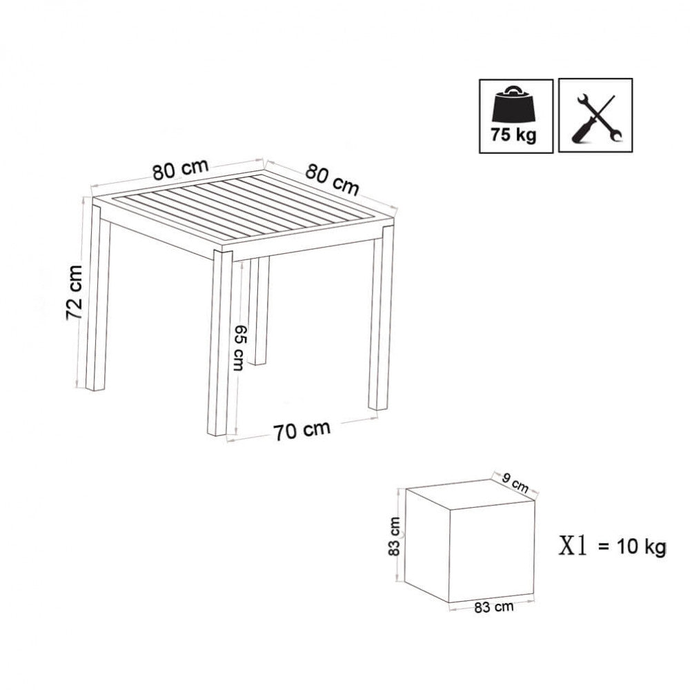 Table Cuba 80x80x74 h cm en Aluminium Taupe