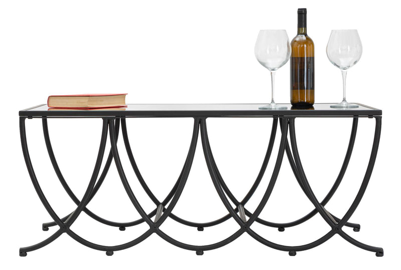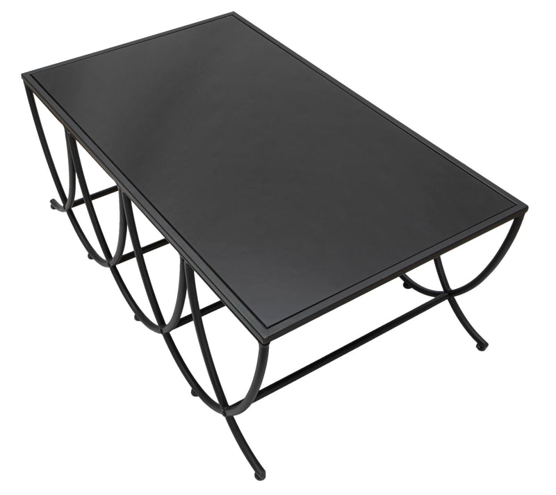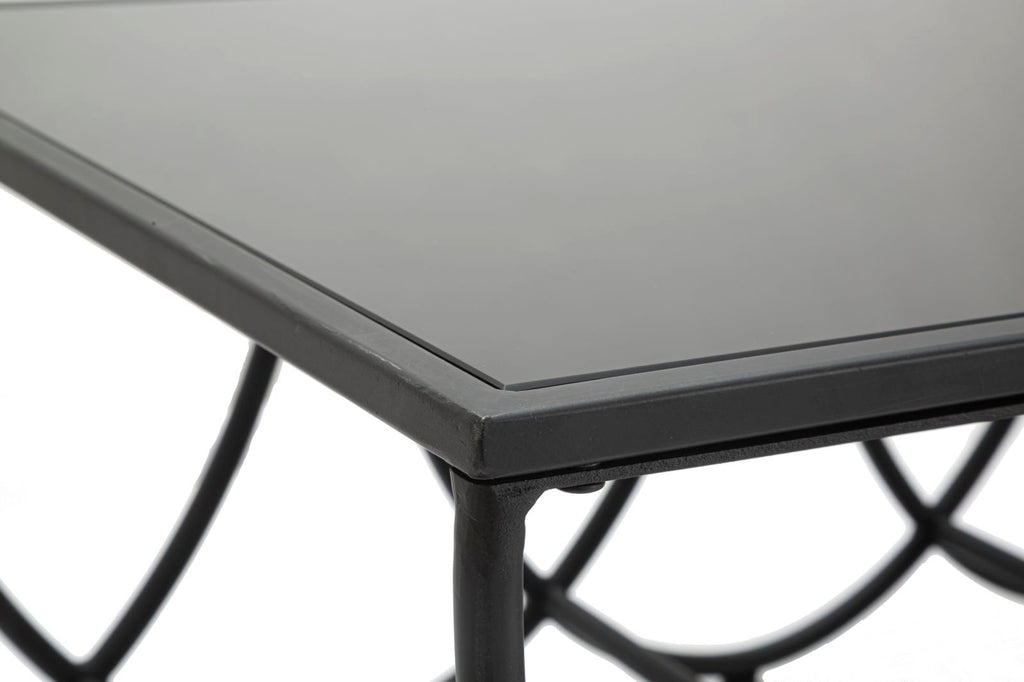 Élégante table basse en métal noir avec plateau en verre trempé noir. Les lignes simples et géométriques en font un élément essentiel pour tout environnement.