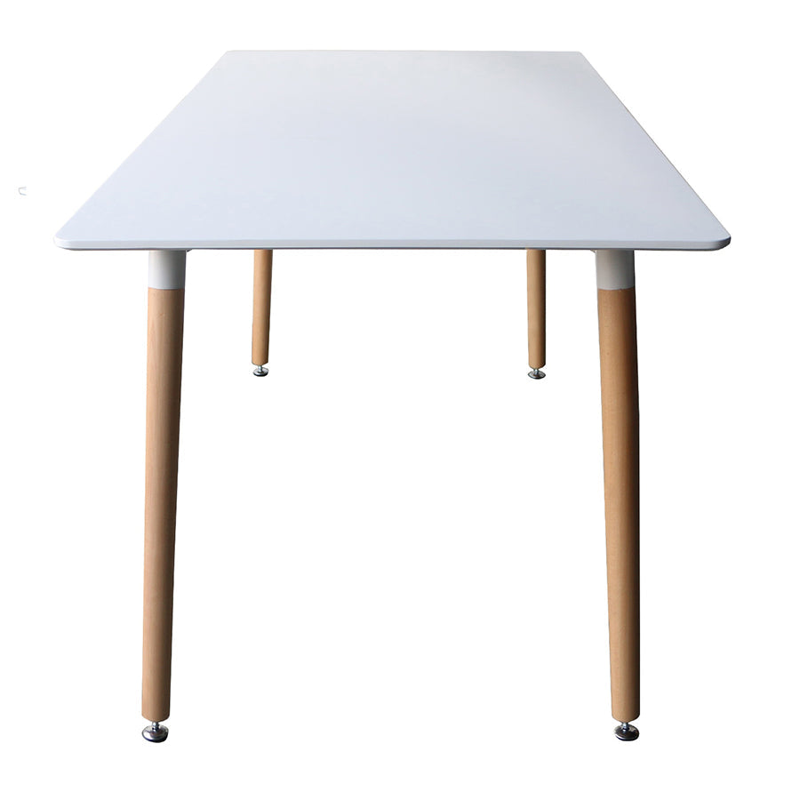 Il tavolo rettangolare da cucina in legno è uno dei grandi classici dell'arredo interno. Questo tavolo ha linee essenziali e morbide, è bianco con piedi marrone natural ed è, quindi, perfettamente versatile ed adattabile ad ogni ambiente e ai vari stili di arredo interno. In particolare questo tavolo da cucina ricorda lo stile scandinavo. Le linee in legno marroncino e bianco regalano ambienti morbidi e ospitali, segnati da un gusto minimal e dal fascino della semplicità.