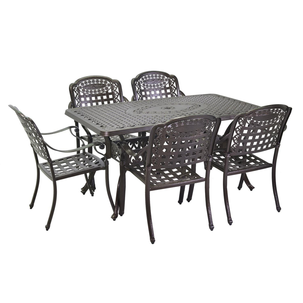 Tavolo da Giardino 150x90xh73 cm con 6 Sedie in Alluminio Maryland Antracite