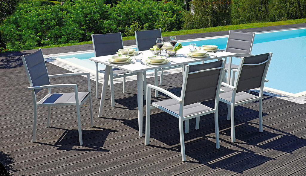Table de Jardin 160x90x74 cm en Aluminium Vorghini Trapani Blanc