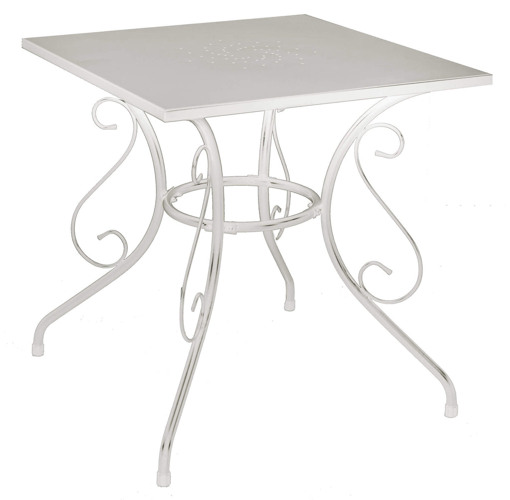 Table de jardin 70x70x72 cm en métal blanc ancien