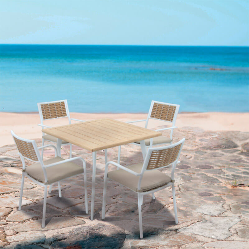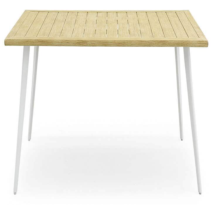 Table de jardin 90x90x75 cm en Kraus Leonardo acier blanc et effet bois