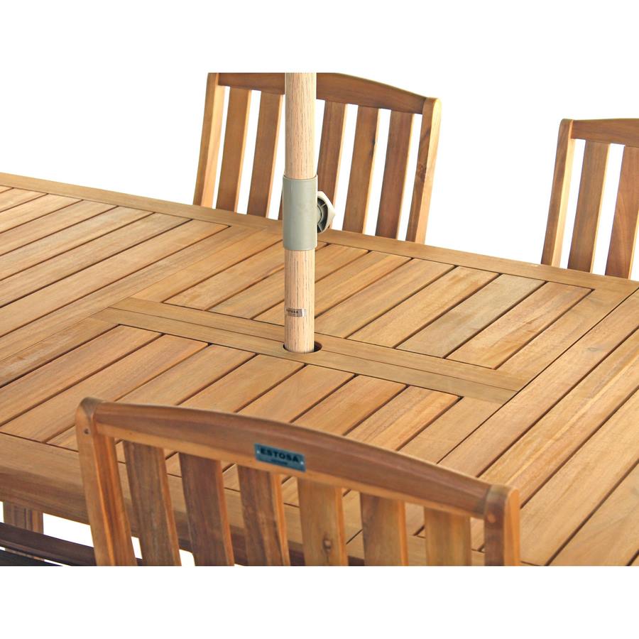 Inoltre, una volta esteso, presenta un foro per l'installazione di un ombrellone.
