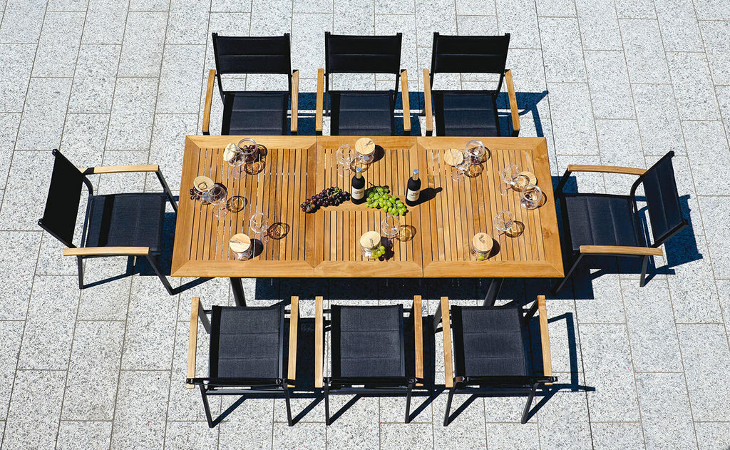 Table de jardin extensible 150-210x90x74 cm en aluminium anthracite plateau teck