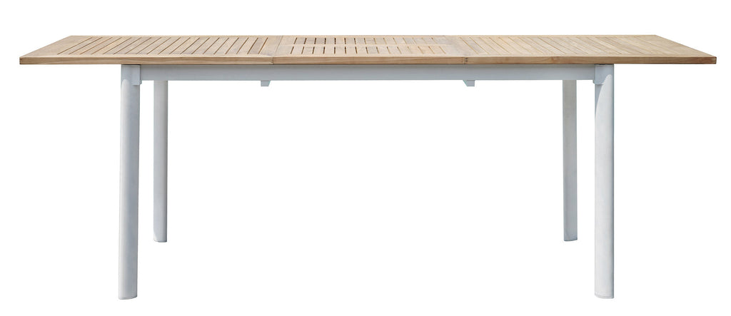 Table de jardin extensible 150-210x90x74 cm en plateau teck aluminium blanc
