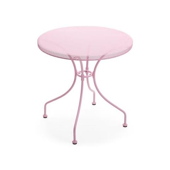 Table avec 4 pieds en fer et plateau en fer perforé enduit de poudre rose, Table d. cm 70 X h71 jambière d. 16 mm x 1,1Table de Jardin en Fer et Plateau Perforé Taddei Netty Rose