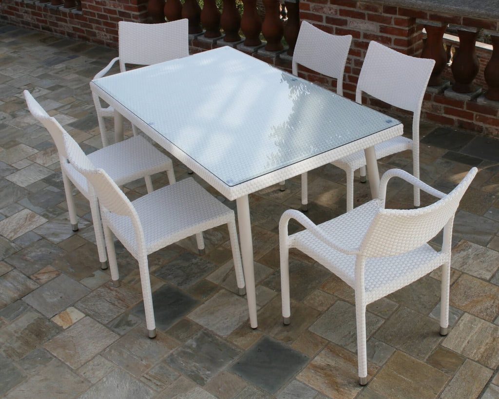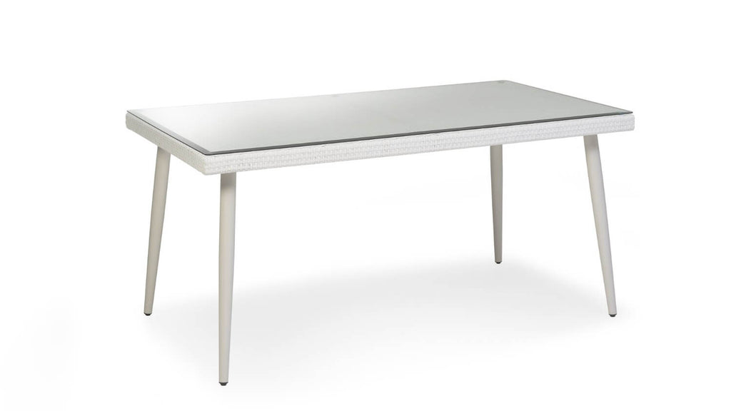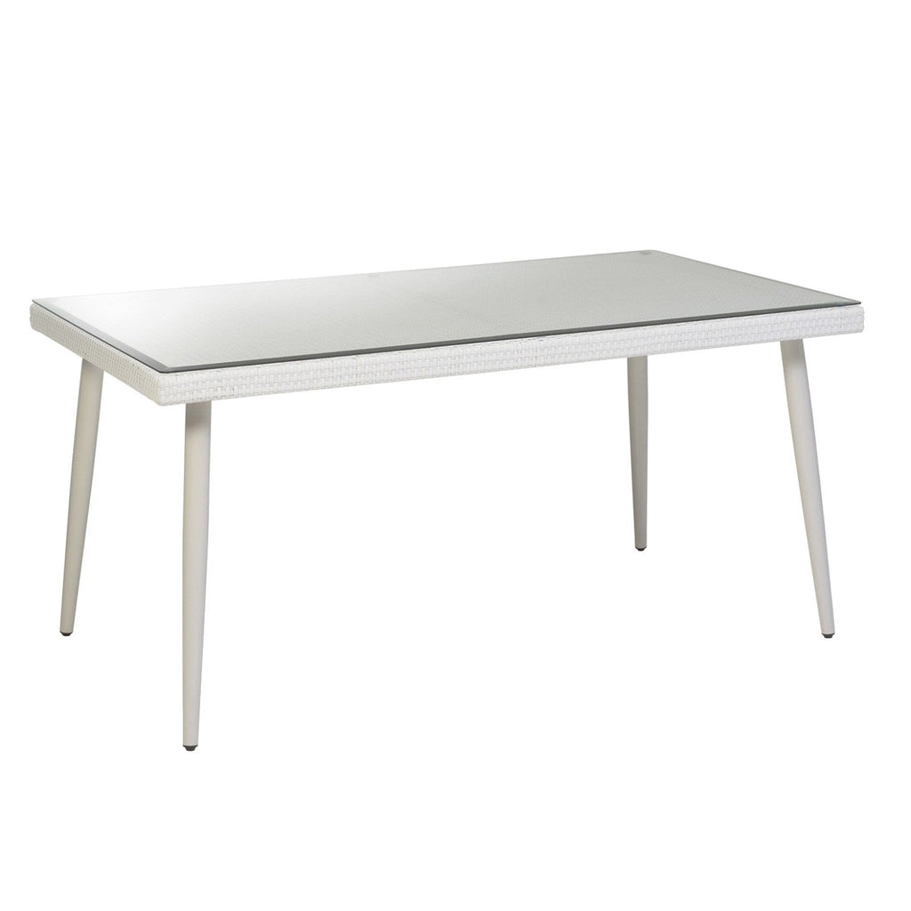 Table de Jardin en Polyrotin avec Verre 160x90H77cm Adami Adila Blanc Crème