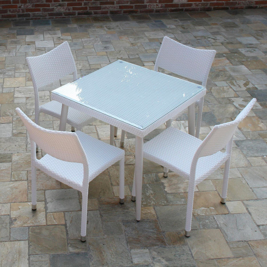 Table de Jardin en Polyrotin avec Verre 90x90H77cm Adami Adila Blanc Crème