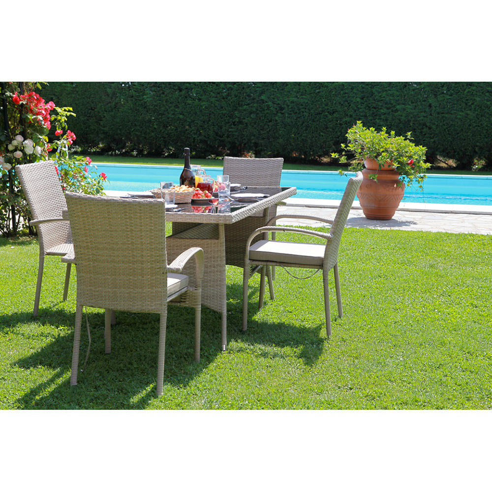 Table de jardin rectangulaire en polyrotin 160x90x75cm Adami Providence Crème