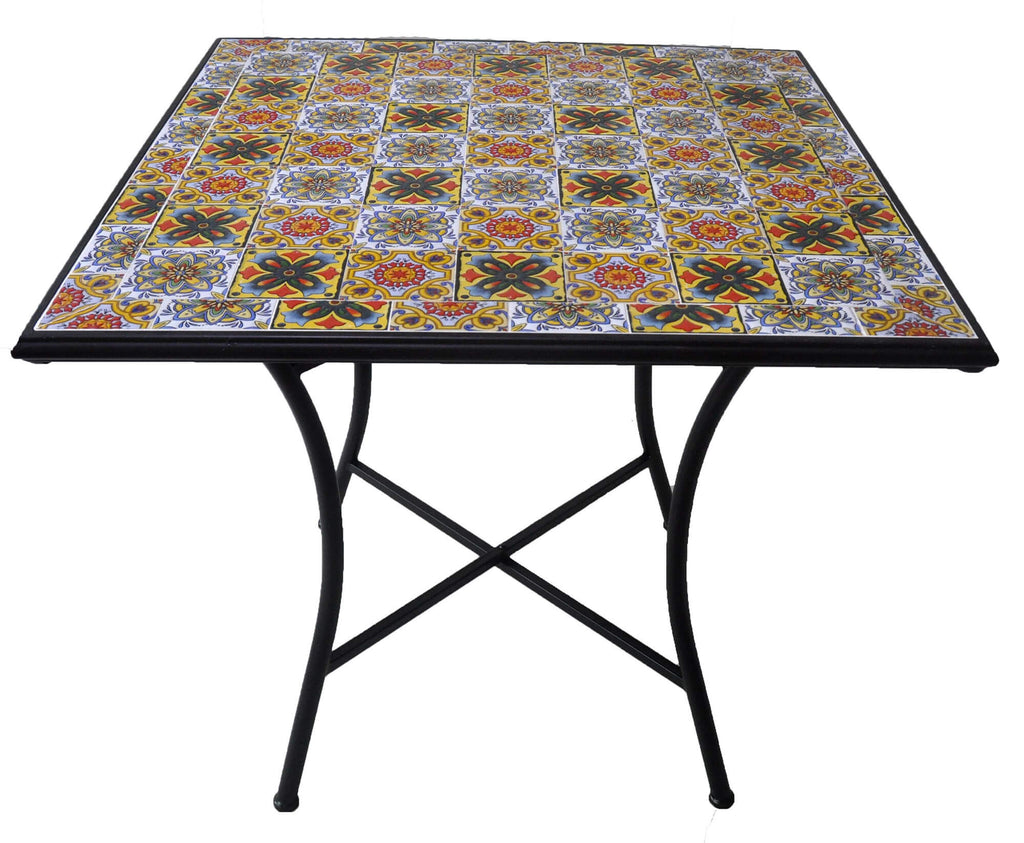 Table de jardin carrée en fer avec plateau en mosaïque Soriani Ravello
