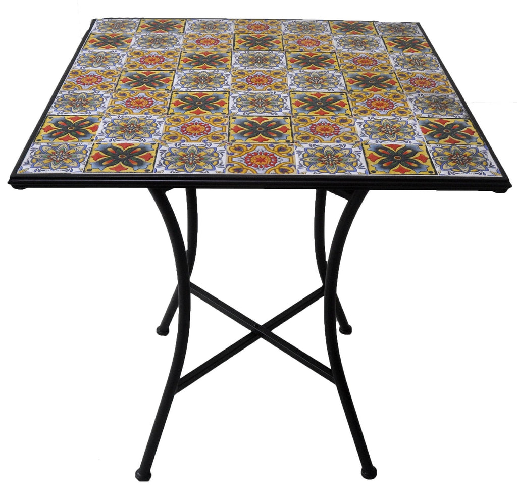 Table de jardin carrée en fer avec plateau en mosaïque Soriani Ravello