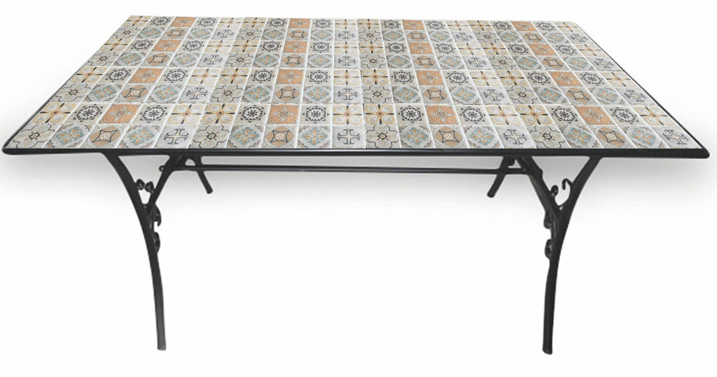 Table de Jardin Rectangulaire 145x83 cm en Fer avec Mosaïque Soriani Rodi