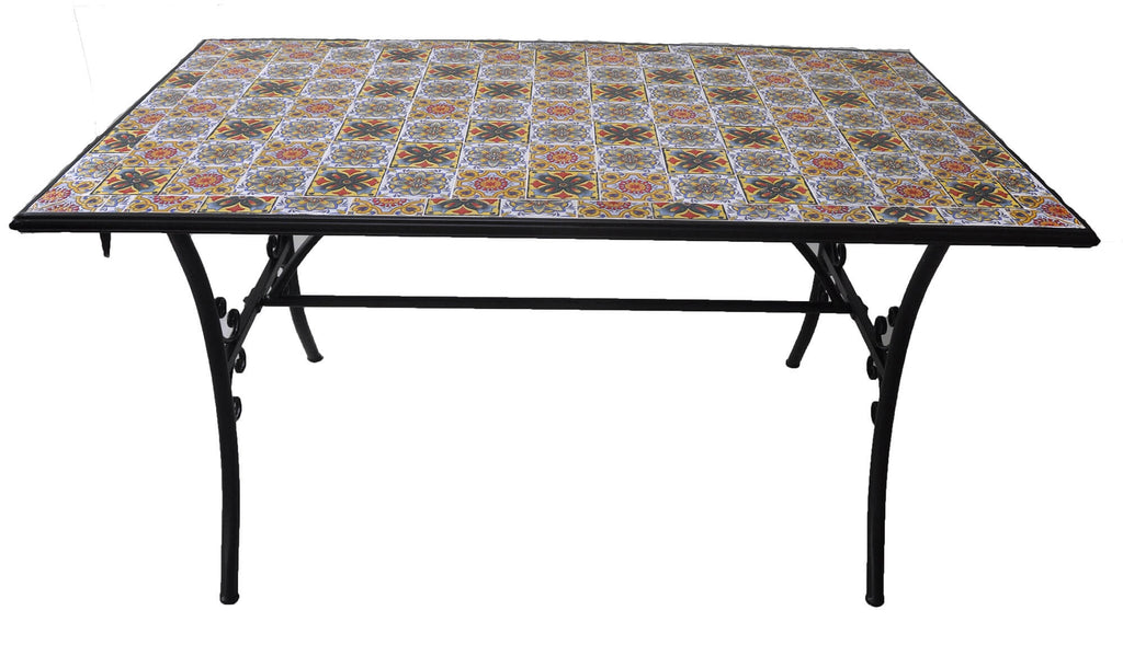 Table de Jardin Rectangulaire en Fer 145x83cm avec Mosaïque Ciment Souris Soriani Ravello
