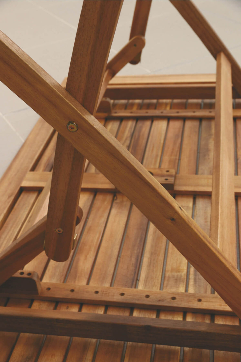 L'acacia est un bois très précieux, caractérisé par une fibre fine, particulièrement résistante à l'humidité, ce qui rend ce type de bois parfait pour la fabrication d'accessoires d'extérieur.