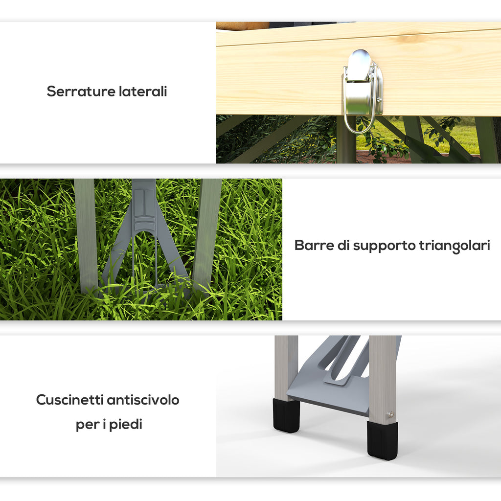 ti accompagna nelle gite all'aperto con questo pratico tavolo da pic nic con sgabelli integrati, per pranzi e momenti di relax in compagnia. Il design pieghevole assicura di ridurre l'ingombro della struttura, per trasportarla facilmente e riporla in poco spazio. Il tavolo è dotato di foro per ombrellone, per tenerti al riparo dal sole e il piano d'appoggio in legno si pulisce facilmente. Preparati al campeggio e alle gite fuori porta con questo set da pic nic!