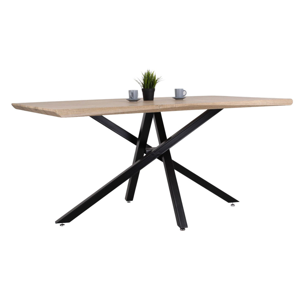 C'est une table pratique et moderne, parfaite pour décorer un salon ou une cuisine au style jeune, industriel et original, son design captivant vous séduira ! Il se caractérise par un plateau en mélamine et des pieds croisés en fer thermolaqué qui garantissent une grande stabilité et confort. La table est conçue pour accueillir de 6 à 8 personnes. Le produit est démonté en 2 colis, avec tout le nécessaire pour le montage déjà à l'intérieur de l'emballage.