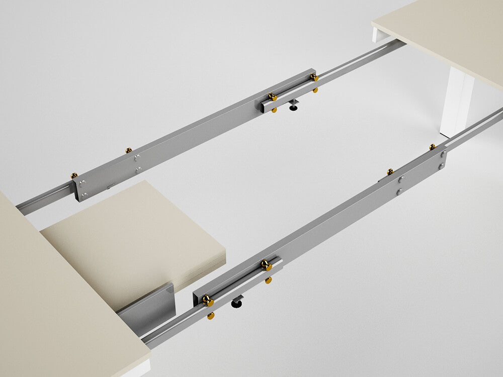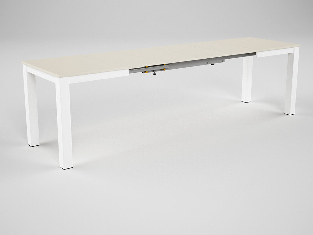 Table à Manger Extensible En Bois Et Plateau Mélaminé 130/290x80x76cm TFT Frêne Blanc et Gris Beige Tiche