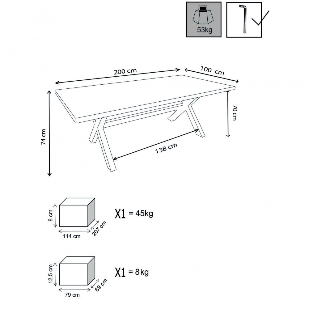 Table Malaysia 200x100x74 h cm en aluminium gris