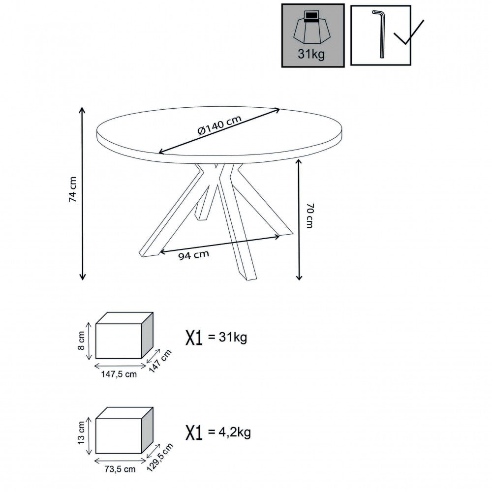 Table Malaysia Ø140x75 h cm en aluminium gris