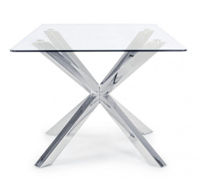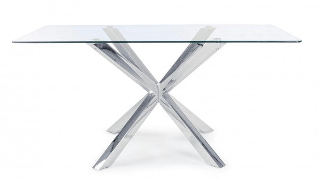 Table Rectangulaire Plateau Verre Pied Acier 160x90 Verre Fixe