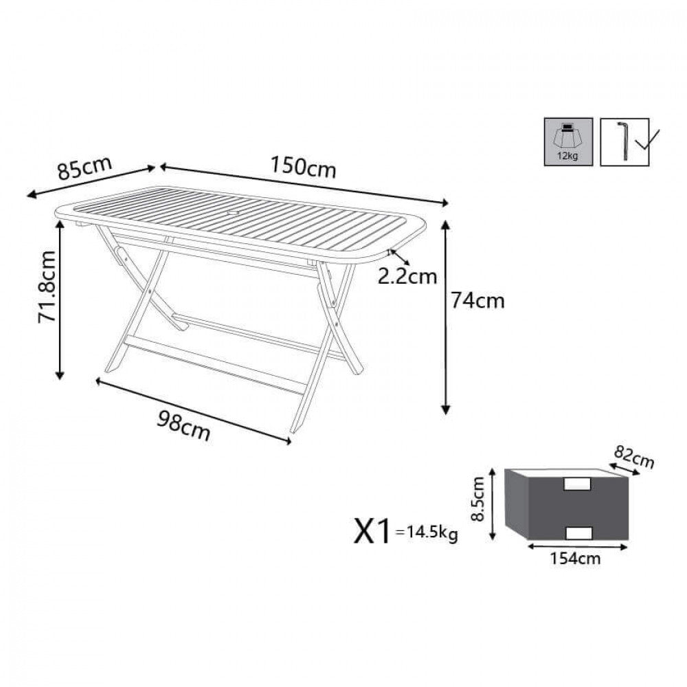 Table Pliante 150x80x74 h cm en Bois d'Acacia Marron