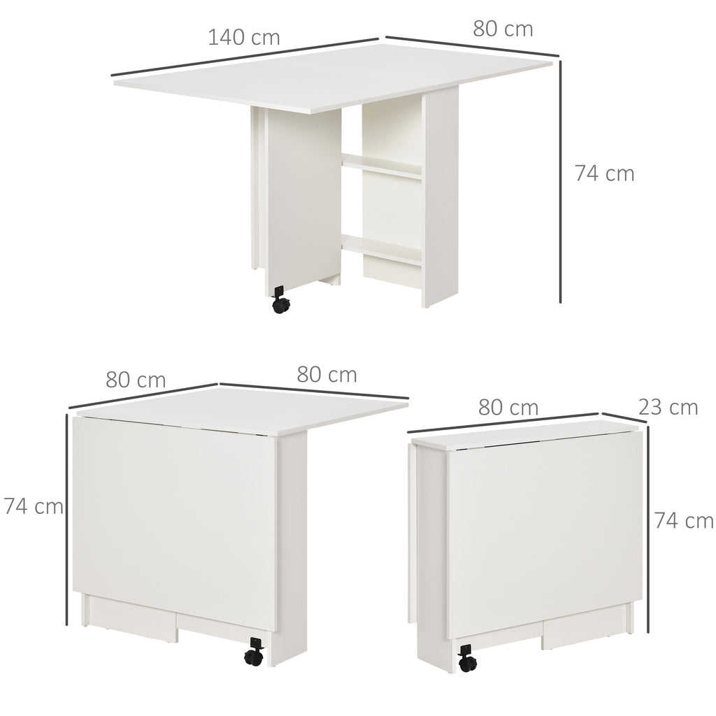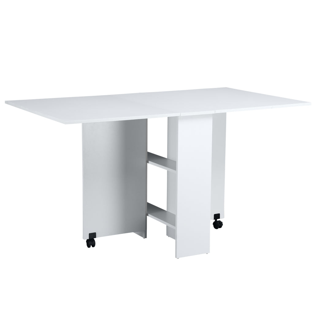 Table pliante gain de place en bois blanc avec roulettes