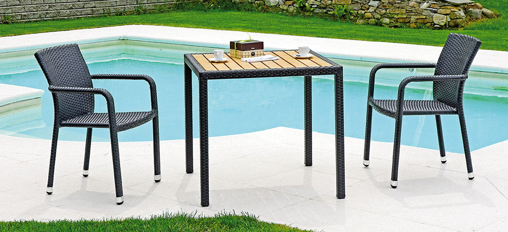 Table de Jardin Carrée Fixe 80x80 cm en Osier Vorghini Orleans Wengé