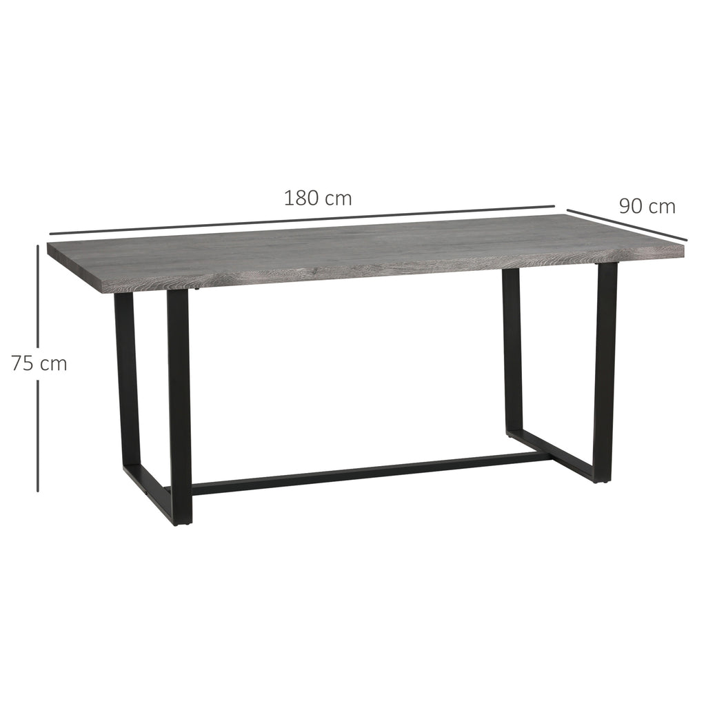 Table rectangulaire 180x90x75 cm Max 8 personnes en MDF et acier gris et noir