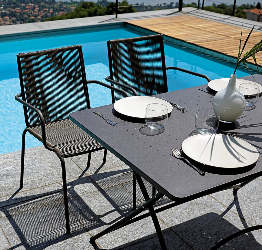 Table de jardin pliante carrée 70x70 cm en fer anthracite Vorghini Orta