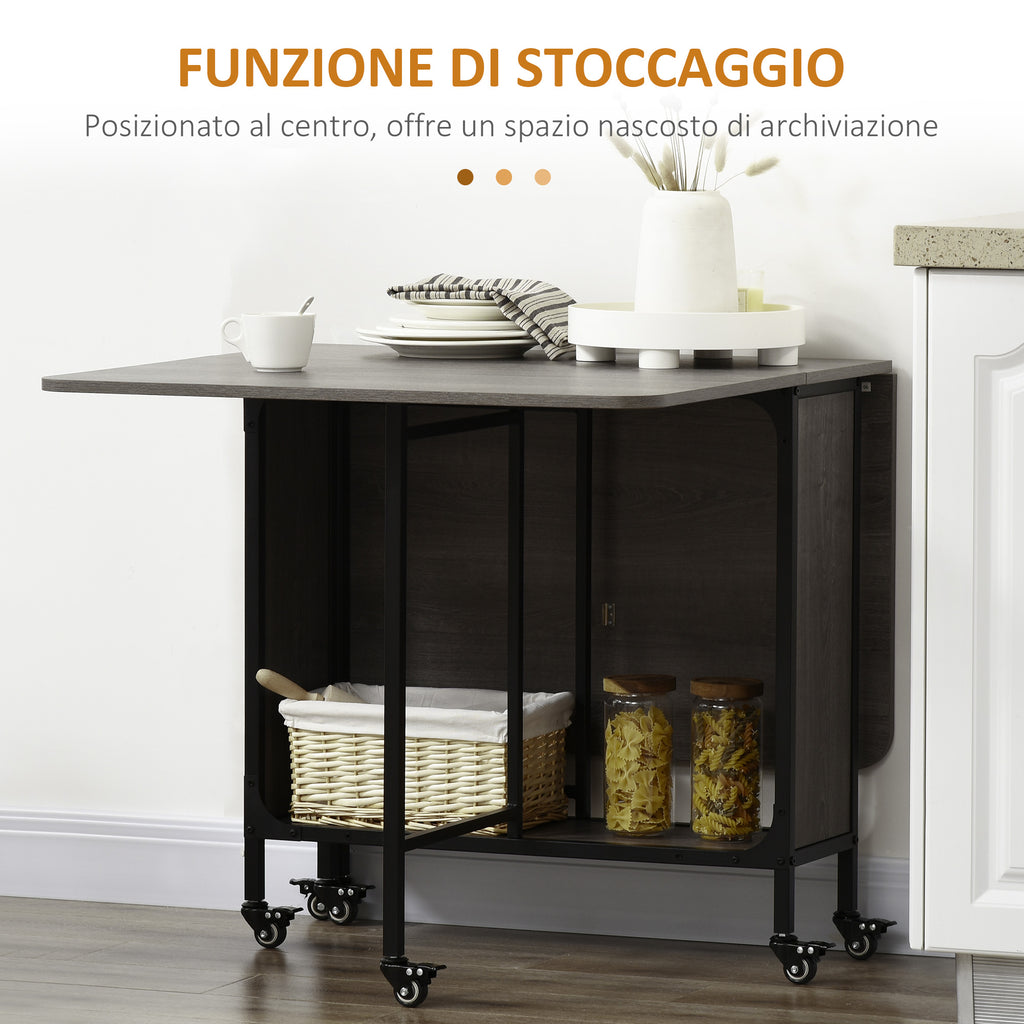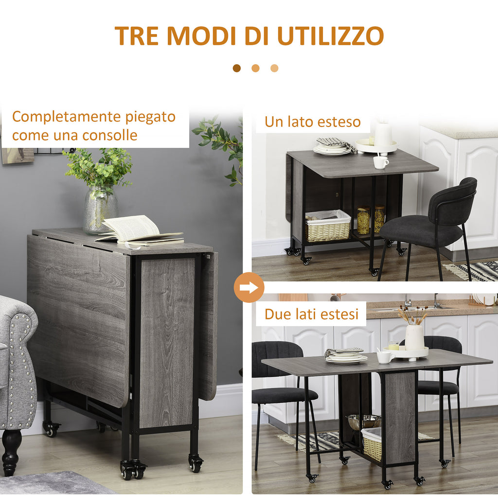 Tavolo Salvaspazio Pieghevole a 2 Ribalte per 6 Persone 130x80x74 cm Grigio