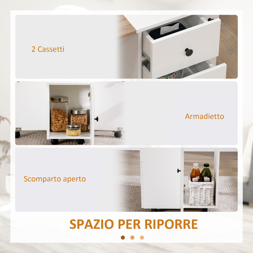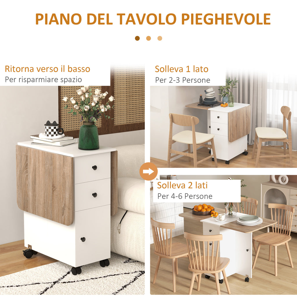 • TAVOLO PRATICO: Il tavolo estensibile è dotato di alcuni cassetti per riporre posate e tovaglioli. Le 6 ruote, di cui 4 con freno, permettono di spostarlo facilmente.