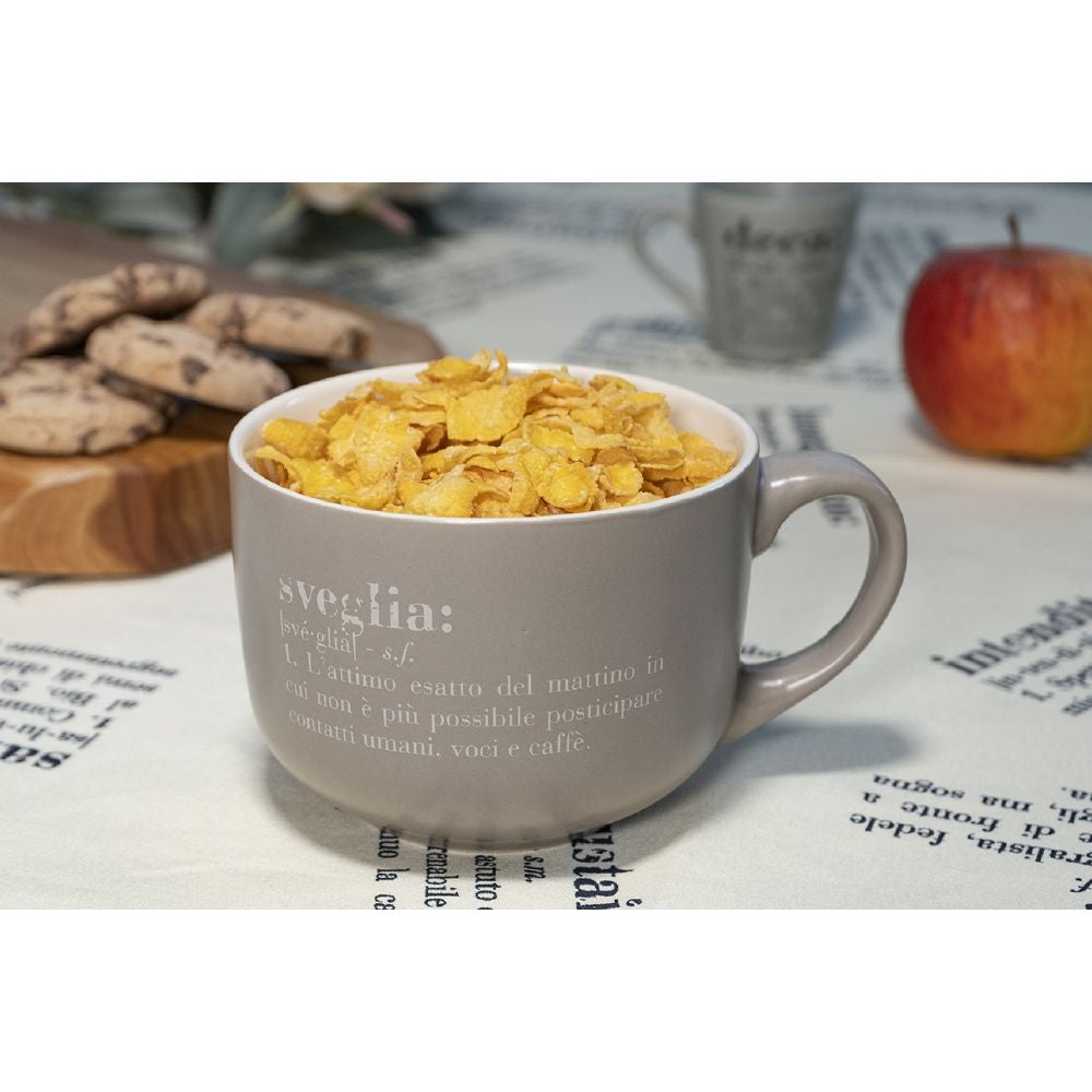 Tasse "réveil et bonjour" 11,5x8,5x6,8 cm en Gres VdE Tivoli 1996 Victionary Gris et Blanc