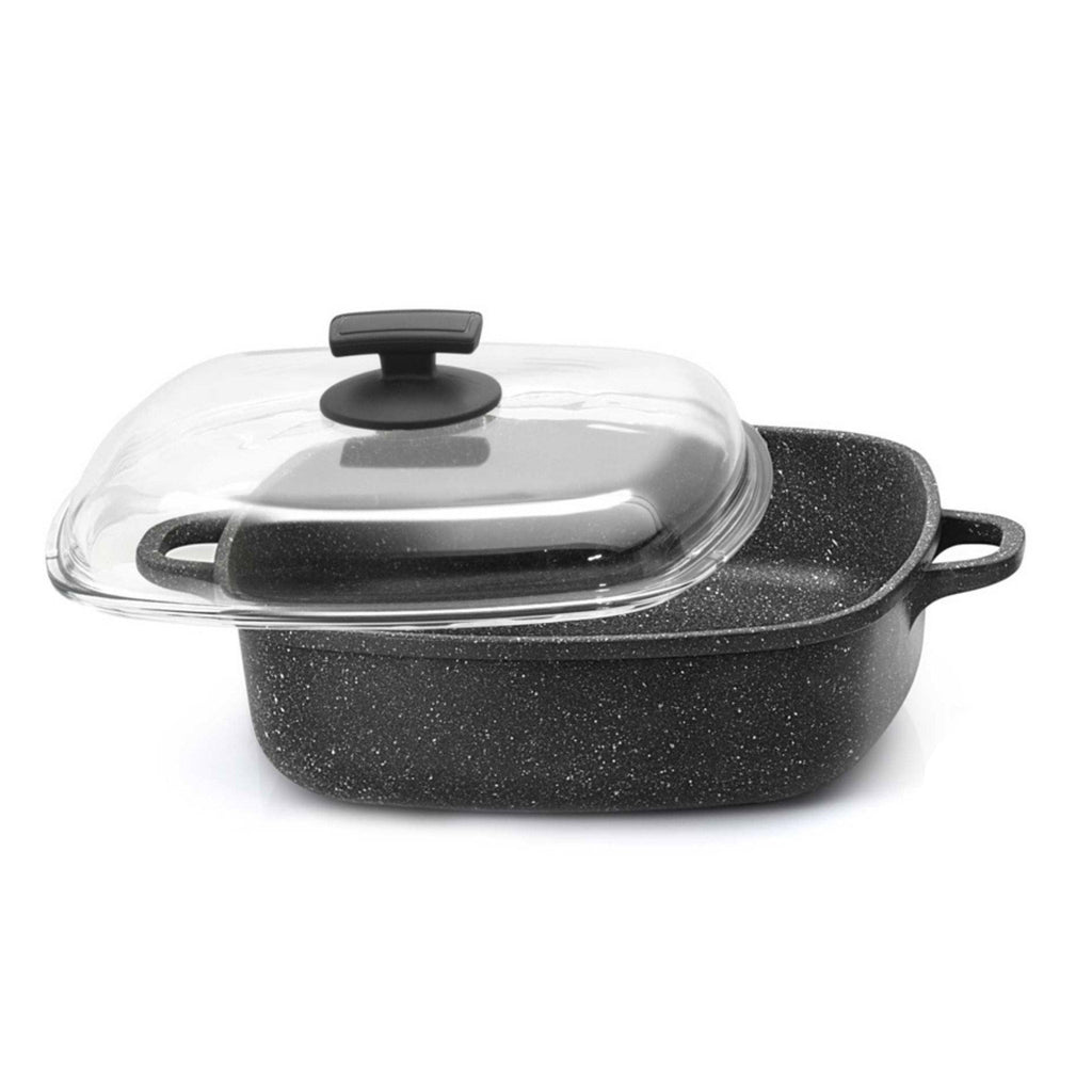 Tegame Quadrato con Coperchio in Vetro Antiaderente 2 Manici 28x28 cm Olympia Hard Cook