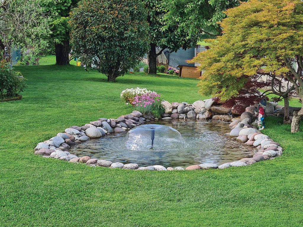 L'excavation doit être nivelée avec une fine couche de sable ou de terre fine. Il est important de créer un équilibre biologique d'algues et de micro-organismes pour permettre aux plantes et aux poissons d'entrer dans un environnement favorable à leur présence, c'est pourquoi, en plus d'insérer une pompe de recirculation avec filtre, nous proposons un produit pour éliminer les traces de chlore nocif. à la vie des poissons et un produit pour établir une bonne colonie bactérienne.