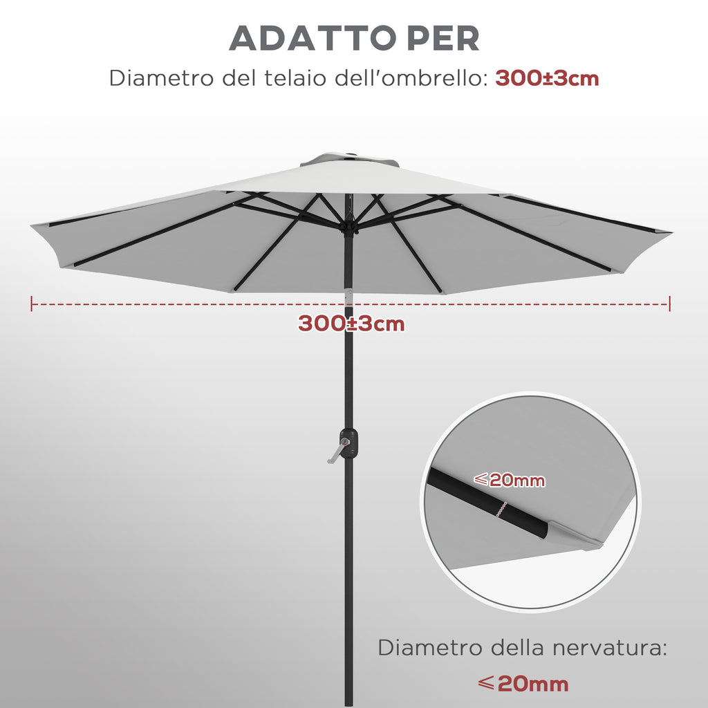 Telo per Ombrellone da Ø295 cm 8 Stecche Palo Centrale o Laterale Resistente all'Acqua Bianco