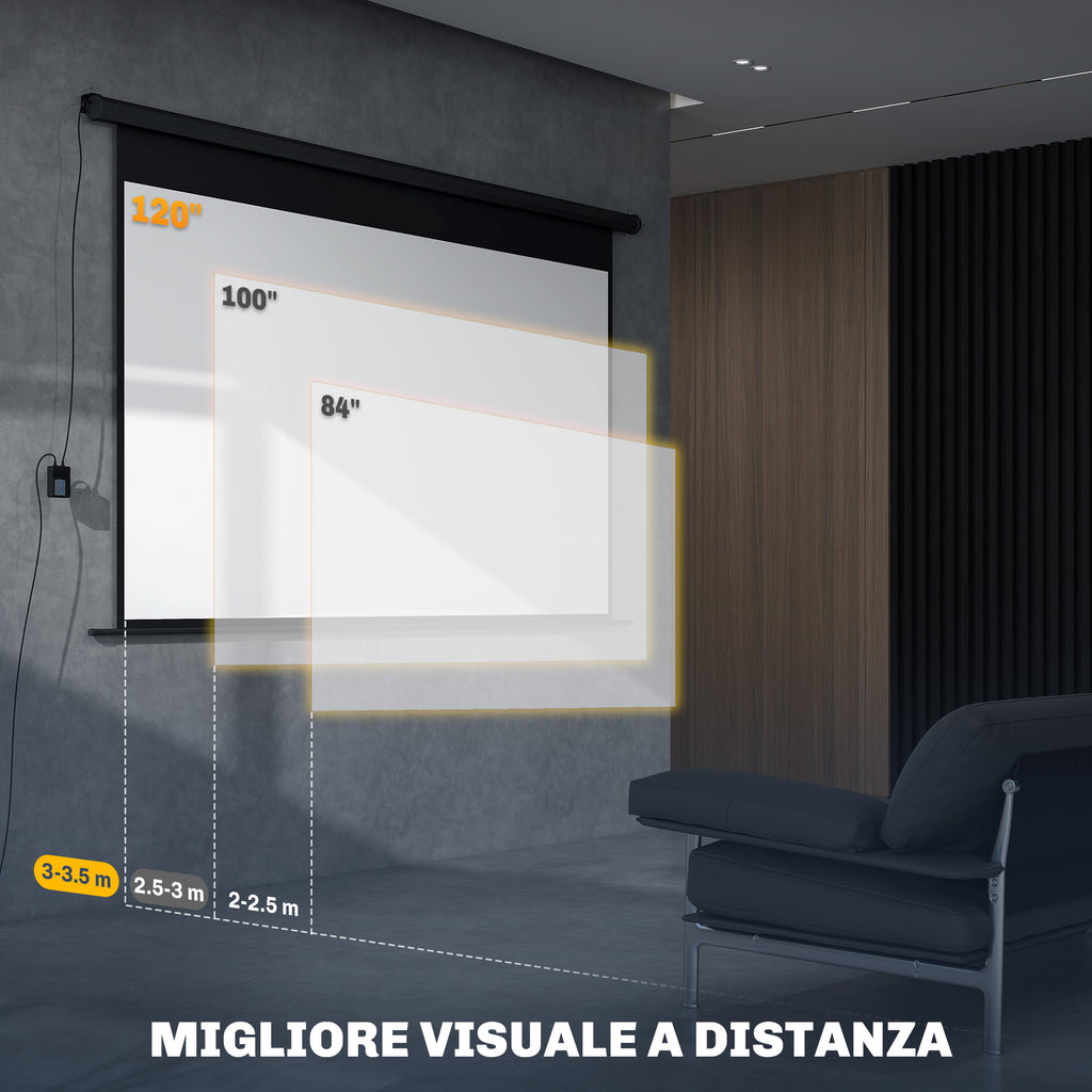 Telo per Proiettore 120" Formato 16:9 Motorizzato con Telecomando Fissaggio a Muro e Soffitto Nero