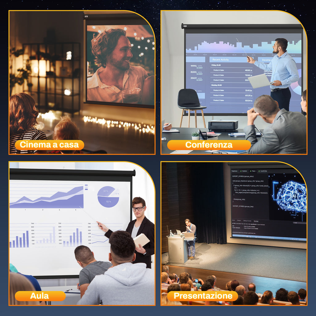- Schermo per proiezione pratico e ideale per guardare film a casa oppure fare presentazioni in ufficio