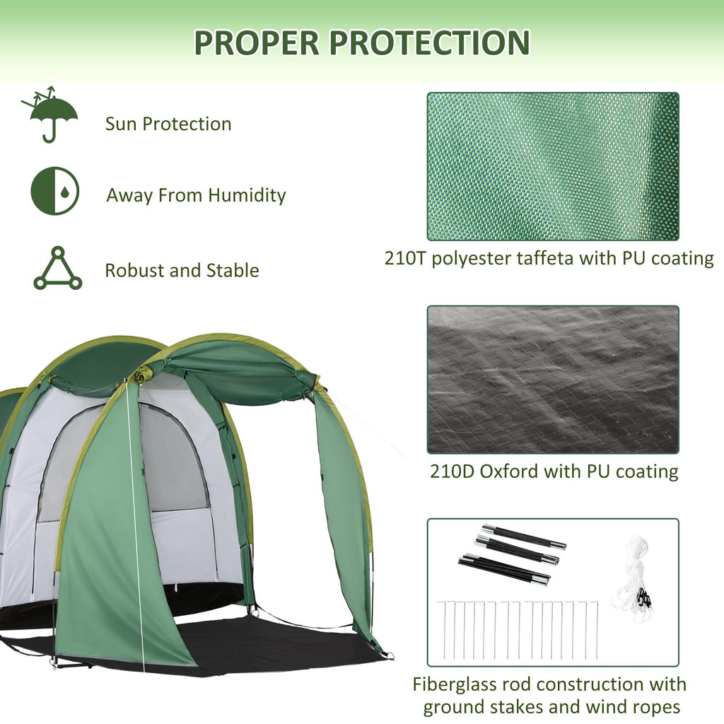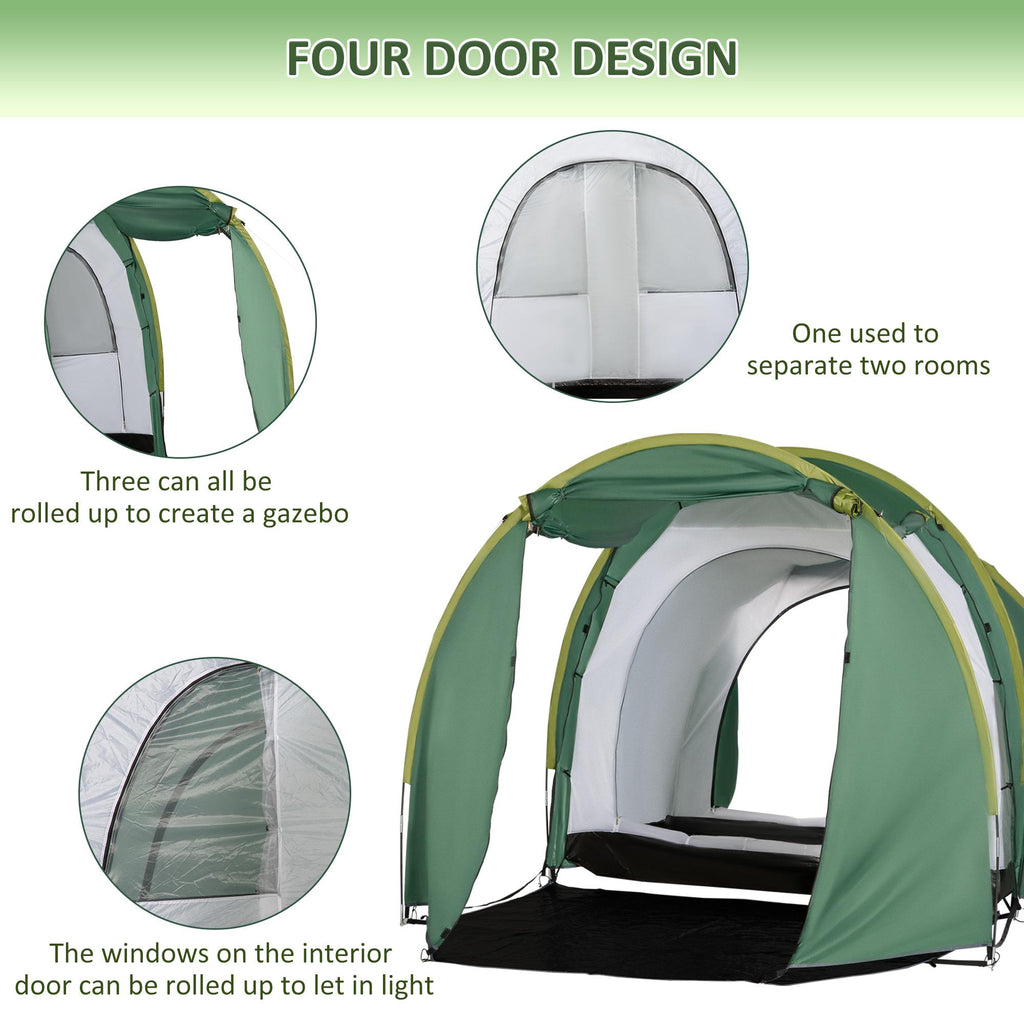Tente de Camping 4-6 Personnes 410x240x195 cm 2 Emplacements 4 Portes Zippées Vert