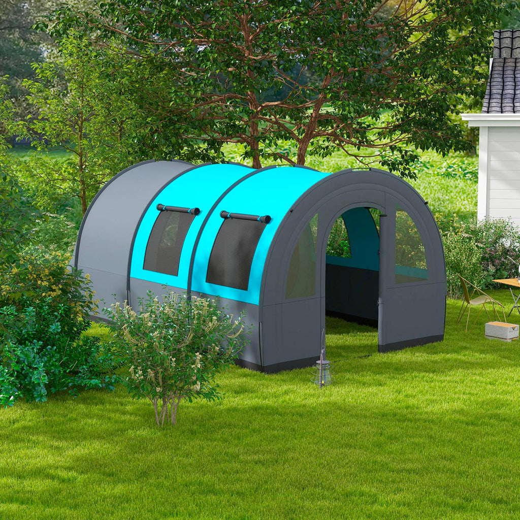Tenda da Campeggio 5 Posti Impermeabile con Zona Notte e Giorno 480x260x200 cm in Poliestere Grigio e Blu
