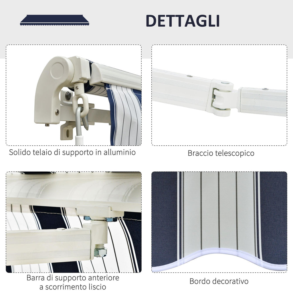 Auvent 295x250 cm en Aluminium et Polyester Bleu et Blanc