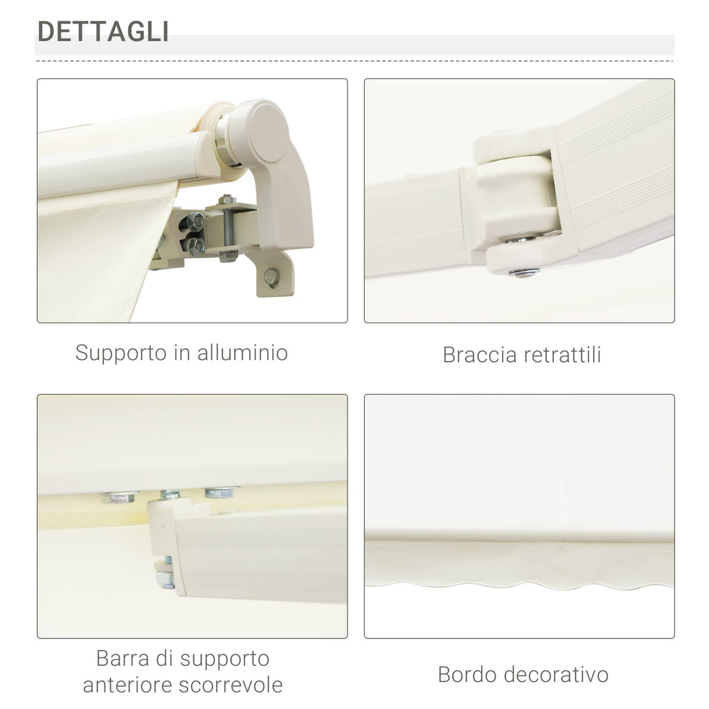 - Tissu polyester soutenu par 2 bras rétractables, enrouleur et barre de support avant